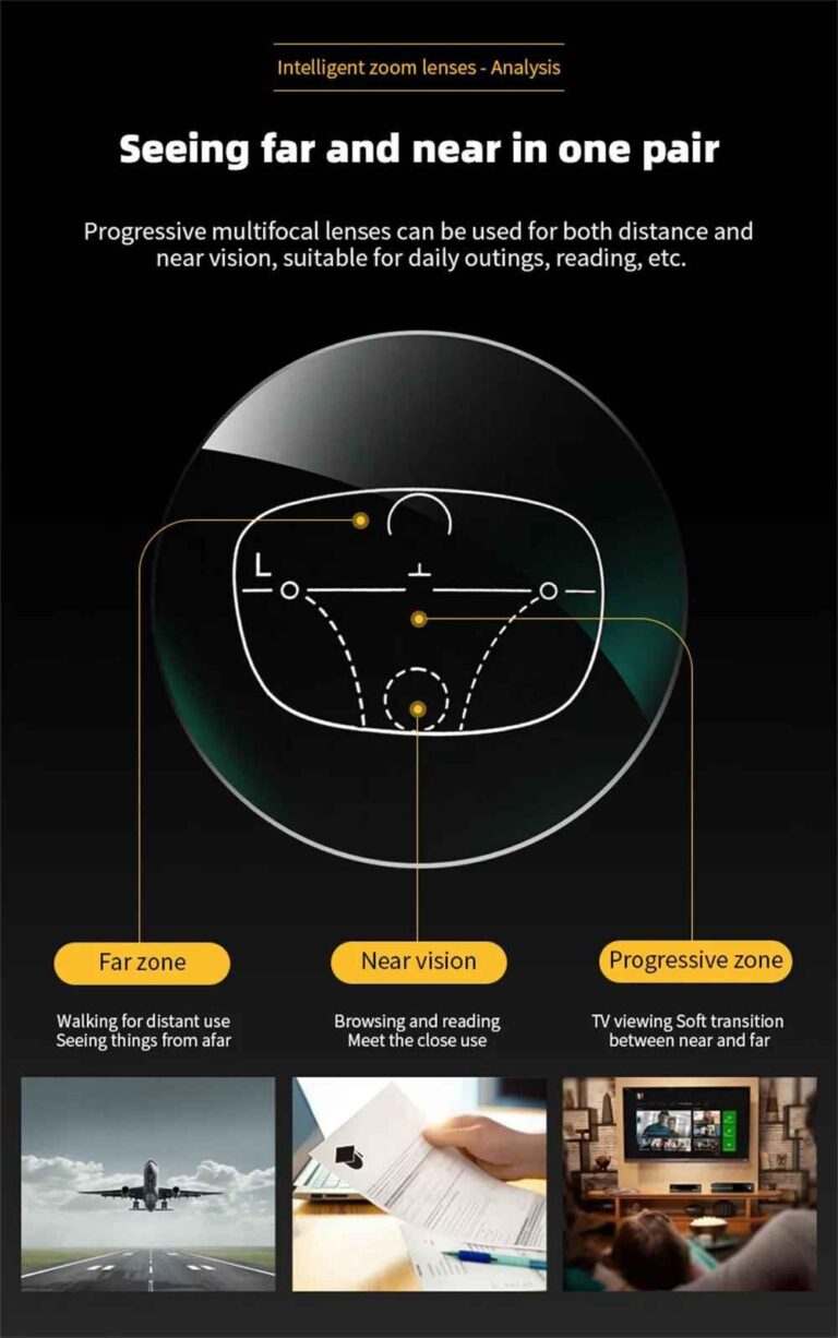 Dilengkapi dengan lensa progresif antiblueray membantu penglihatan jadi lebih jelas & fokus dan anti radiasi